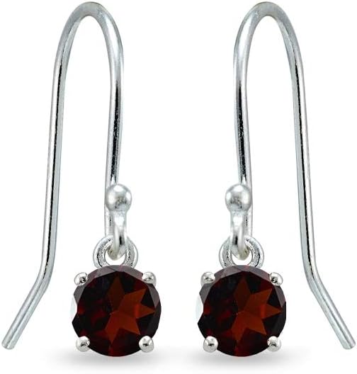 Silver Birthstone Dangle Earrings - Genuine Gemstone, 6mm Round Solitaire, Dainty Drop Earrings for Women