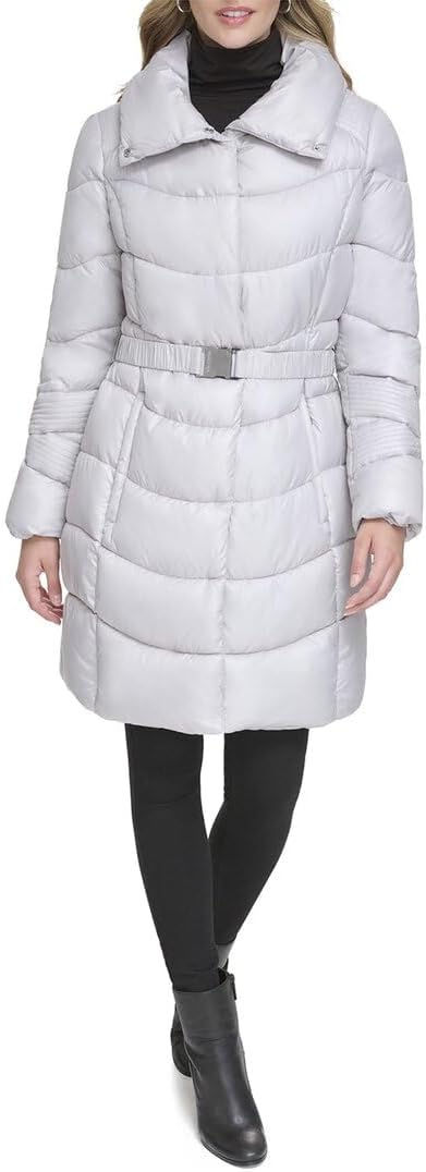 Kenneth Cole Women's Diamond Quilted Belted Puffer With Ultra Soft Plush Synthetic Fill