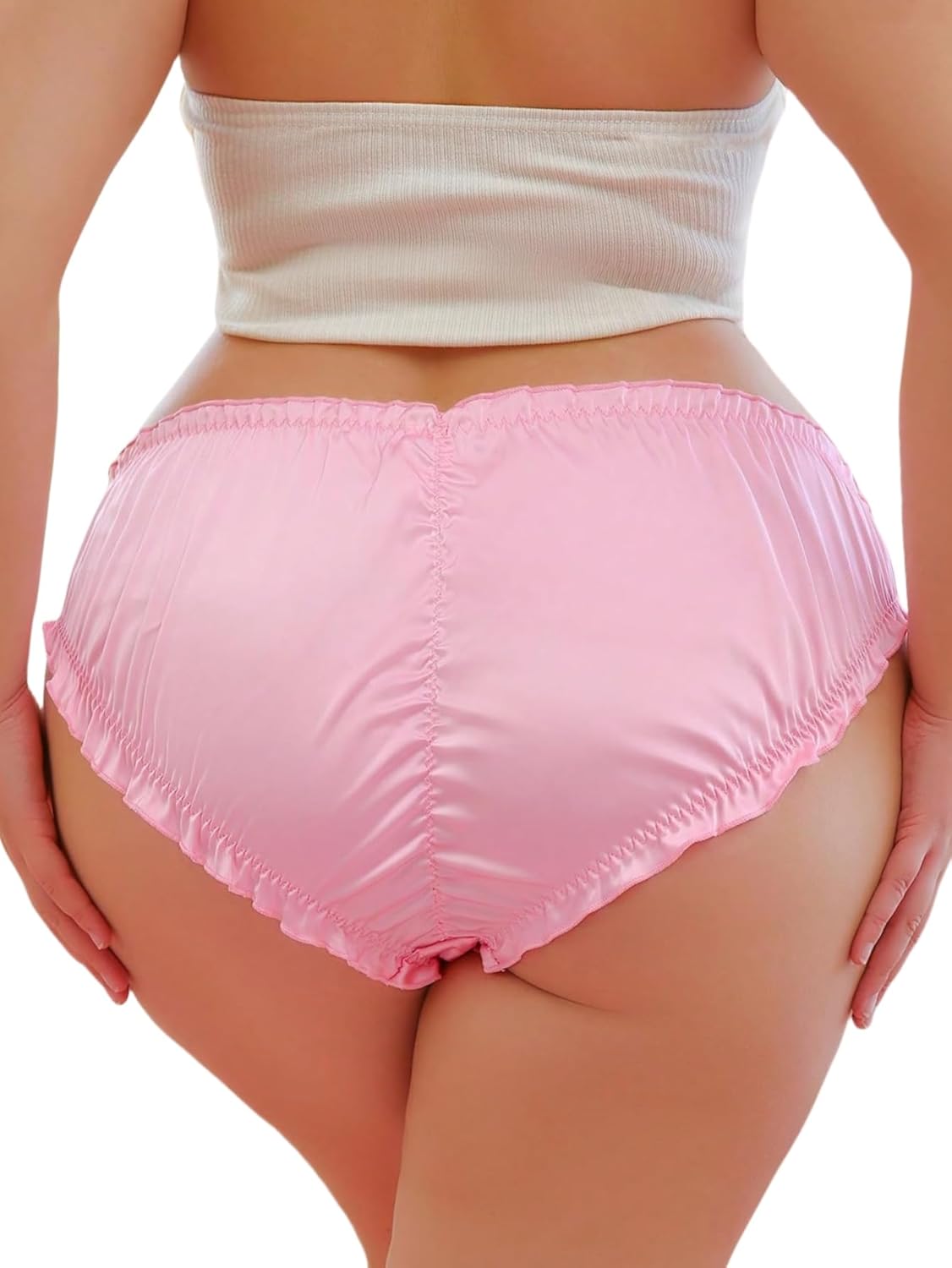 SHENHE Women's Plus Size Satin Panty Frill Trim Ruched Low Rise Silky Hipster Underwear