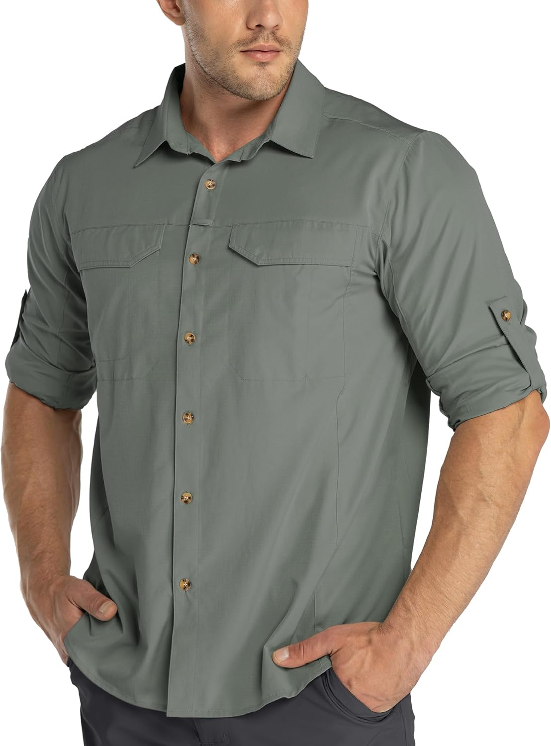33,000ft Men's Long Sleeve Hiking Shirts Lightweight Quick Dry Sun Protection UV UPF 50 Fishing Shirt Outdoor Safari Travel