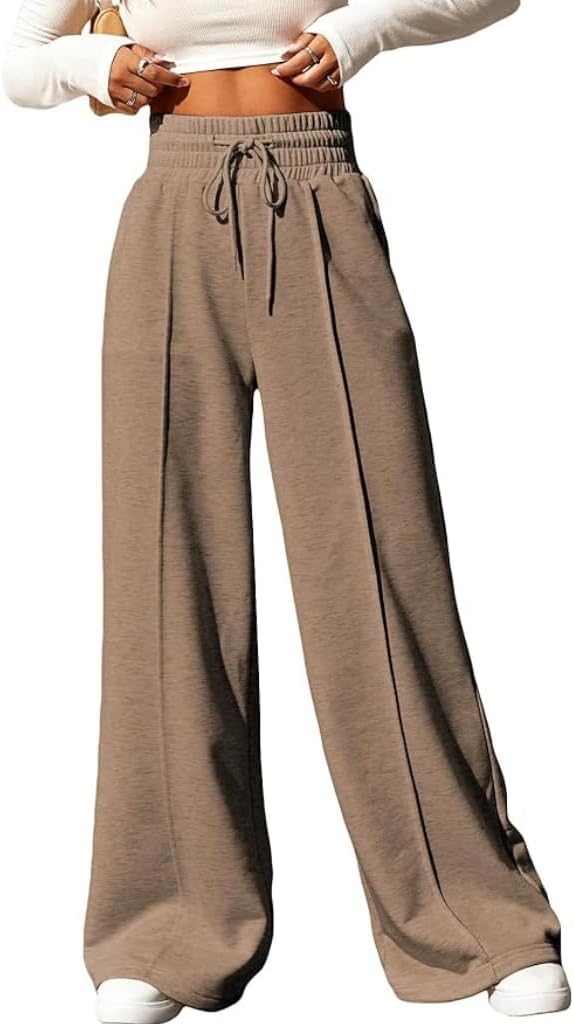 Women's Drawstring High Waisted Flare Sweatpants Wide Leg Long Pants Sweatpants Trouser