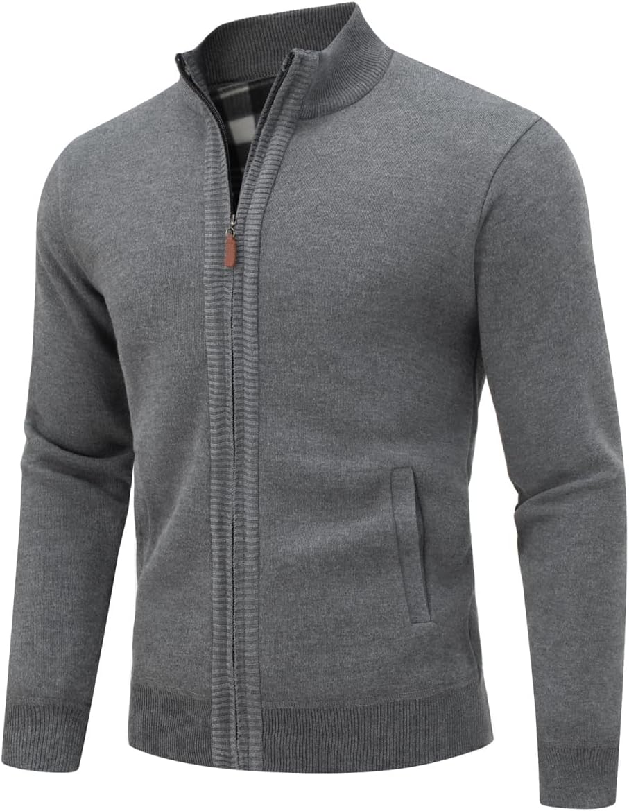 Men's Cardigan Sweaters Full Zip Stand Collar Slim Fit Knitted Casual Lightweight Long Sleeve Sweater with Pockets