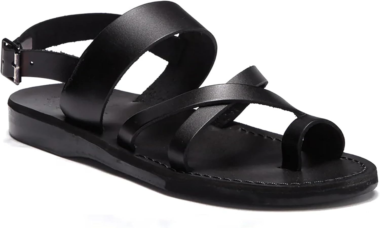 Amos - Leather Ankle Strap Flat Sandal - Mens Sandals