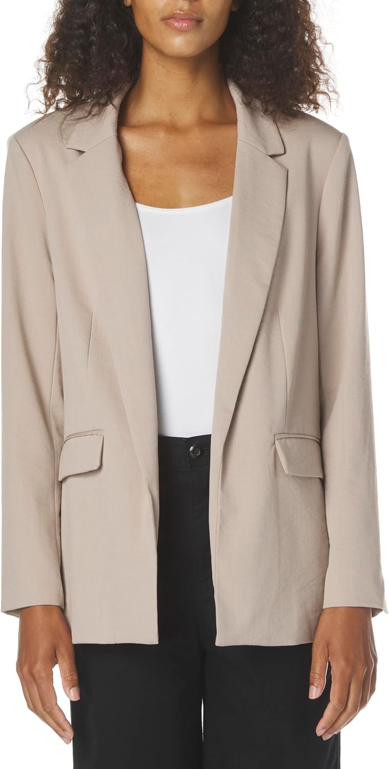 Women's Long Sleeve V Neck Twill Open Blazer