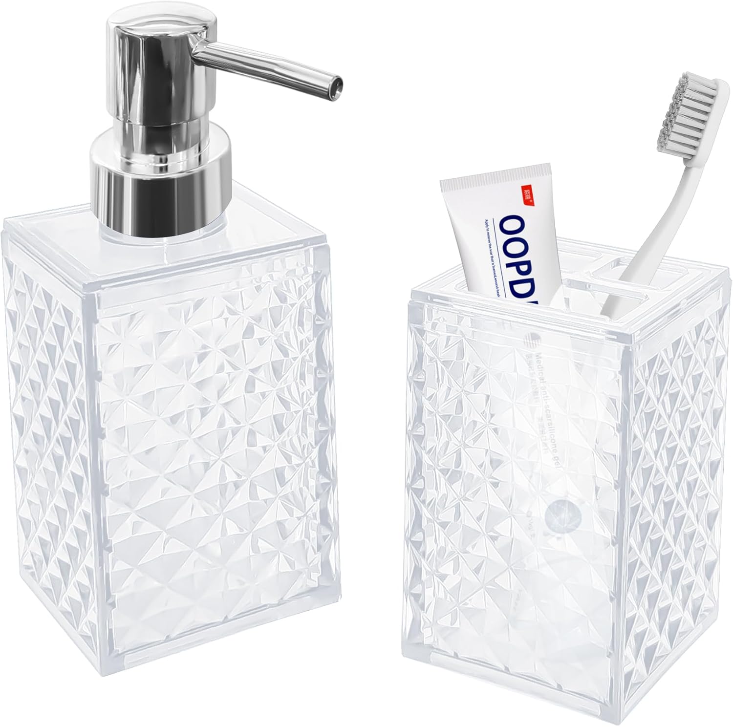 2PCS White Bathroom Accessories. Contain Soap Dispenser and Toothbrush Holder Set. Boho Bathroom Set for Blue Bathroom Décor