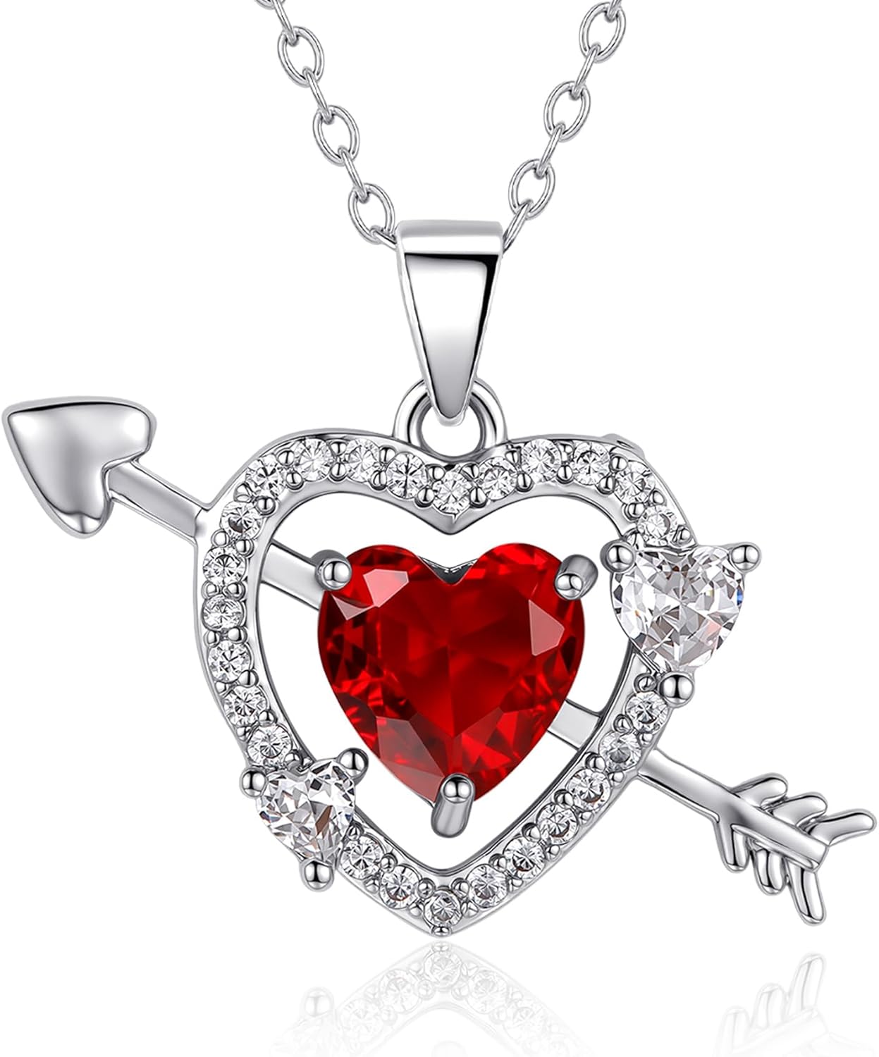 Lolitta Red Crystal Heart Pendant Necklaces For Women, 18k White Gold Plated 18+2 Inch Adjustable Chain, Dainty Jewelry Rose Gifts Set, Anniversary Birthday Mothers Day Gifts For Women Wife Mom Her