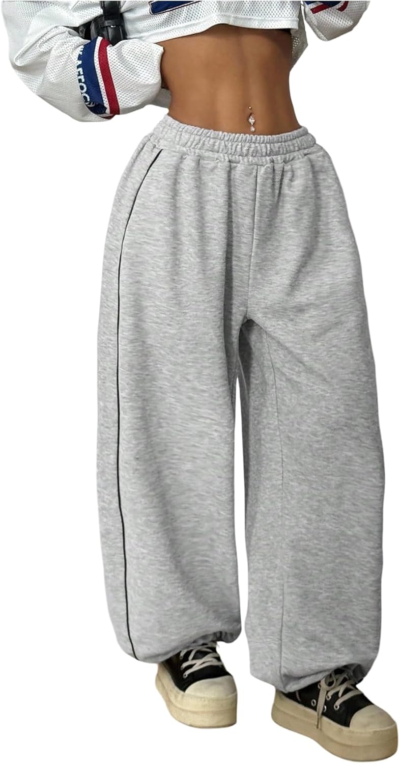 SHENHE Women's Baggy Sweatpants Elastic Waist Wide Leg Casual Loose Pants with Pockets