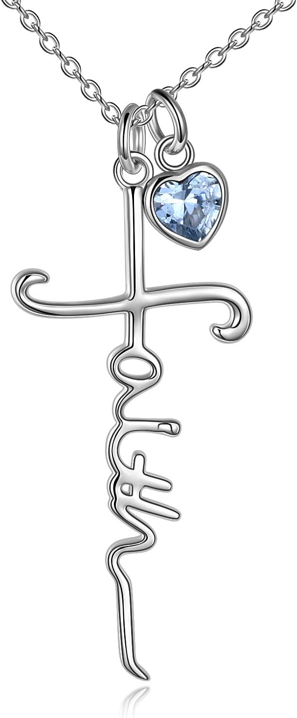 Faith Cross Necklace For Women Birthstone Sterling Silver with Simulated Birthstone Cross Jewelry Christian Gifts