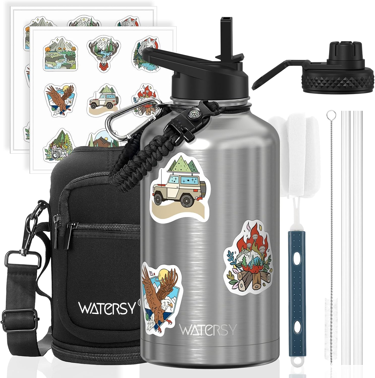 - 【PERFECT DRINK IN EVERY OCCASION】: Watersy 64oz water bottle insulated is perfect for traveling, hiking, cycling, camping, fishing, gym and more. It is a great gift for your loved ones to help them keep hydrated and healthier.