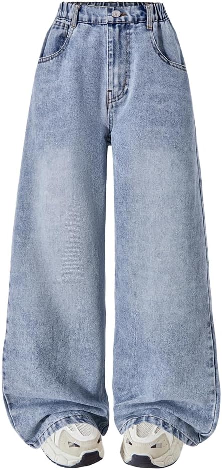 Nivne Tco Tween Girls Wide Leg Jeans Loose Fit Kids Casual Zipper Fly Baggy Denim Pants with Pockets