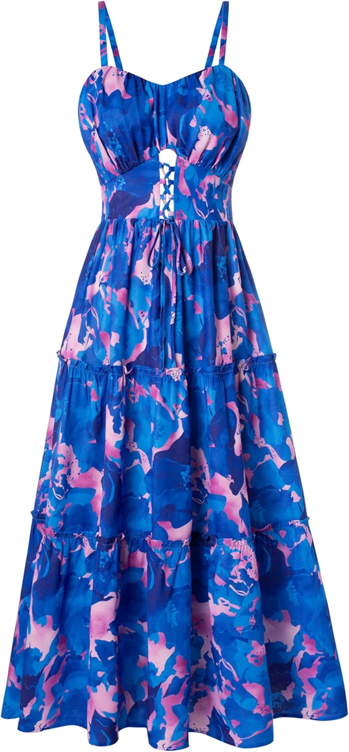 GRACE KARIN Women's Summer Floral Dress 2026 Boho Spaghetti Strap Smocked Tiered Casual Maxi Long Sundress with Pockets