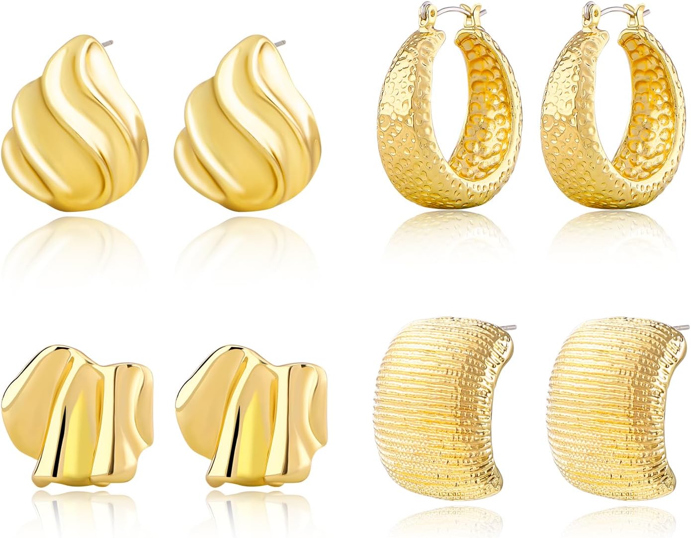 Gold Hoop Earrings for Women Set - 14K Gold Plated Thick Chunky Hoops