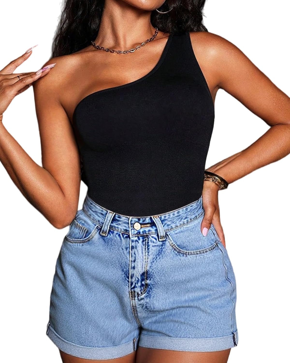 One Shoulder Shapewear for Women, Seamless Tummy Control Thong Bodysuits - Body Shaper for Going Out Tops