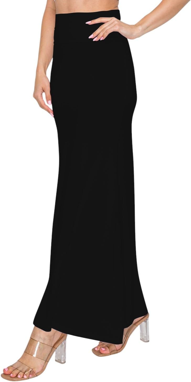 OMNIGENUS Women's Folded Wide Waist Band Long Maxi Skirt (S-XL)