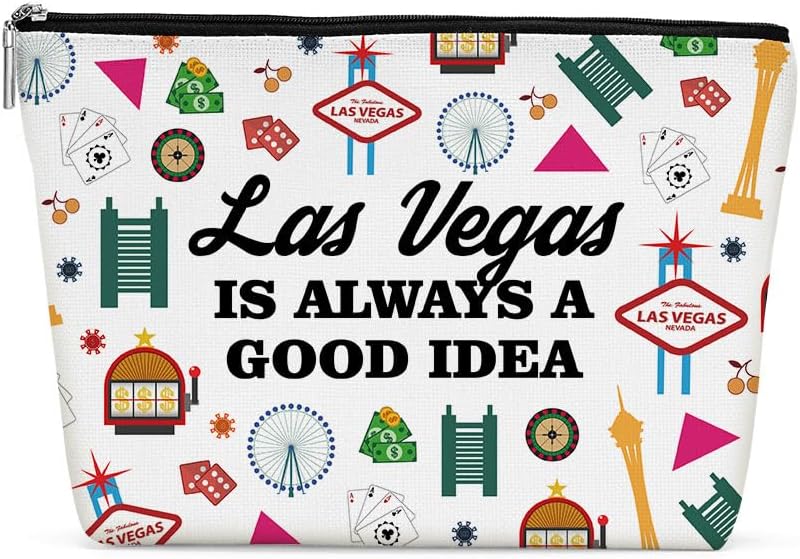 Las Vegas Gifts Makeup Bag, Las Vegas Souvenir Las Vegas Lovers Gift Retro Funny Vegas Travel Vacation Cosmetic Bag for Women Mom Bestie Birthday Christmas Bachelorette Party Friendship Gifts