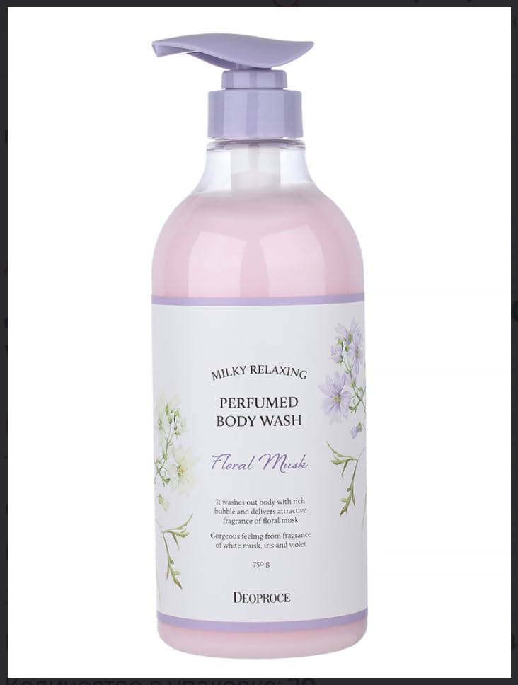 Deoproce Milky Relaxing Perfumed Body Wash 25.36 OZ Floral Musk Lightweight Cleansing Body Wash with White Musk Iris Violet Scent for Daily Body Care