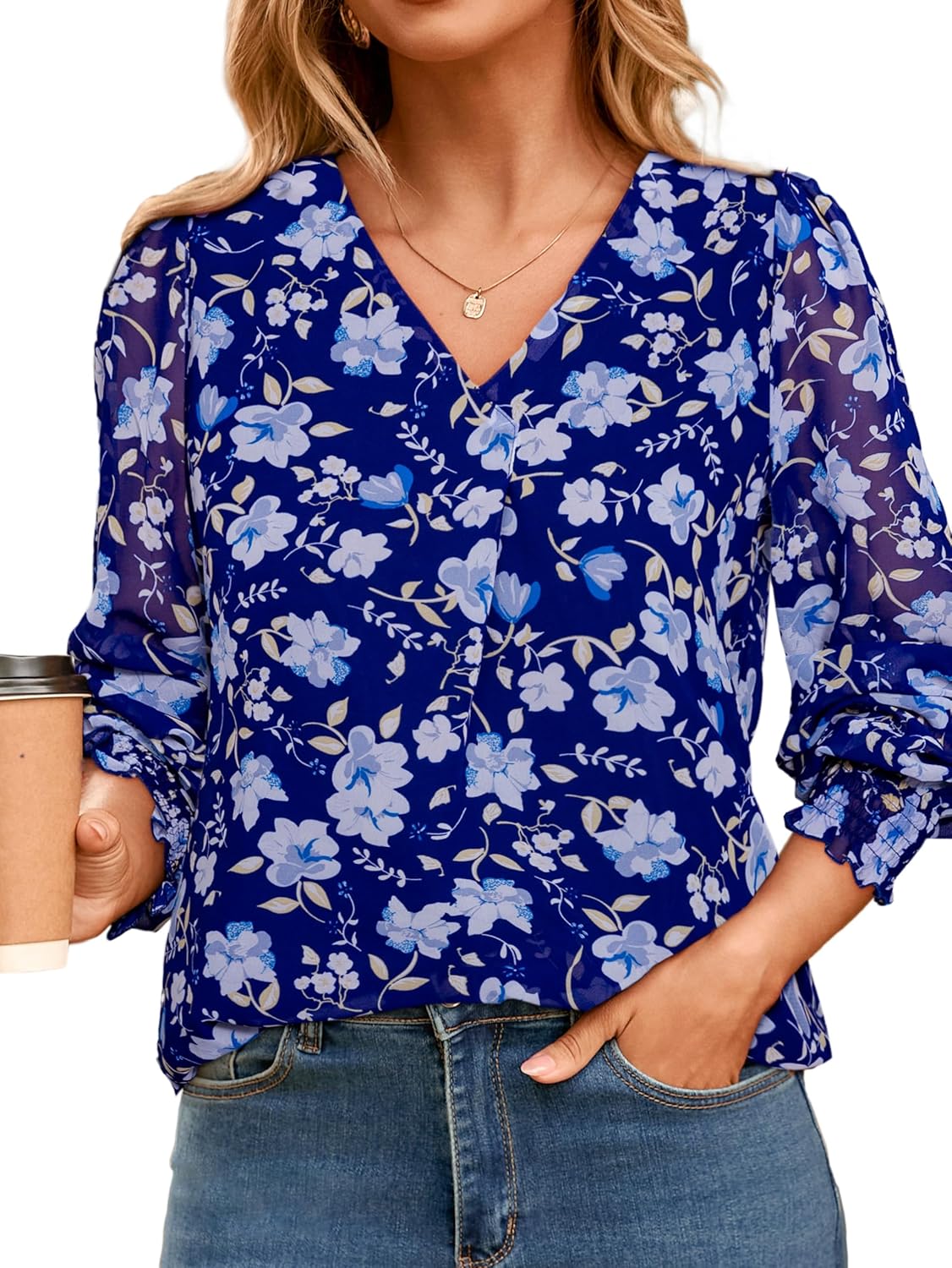 Simplee Womens Work Business Casual Tops Fall Long Sleeve Dressy Boho Floral Blouse 2025 Trendy Shirts