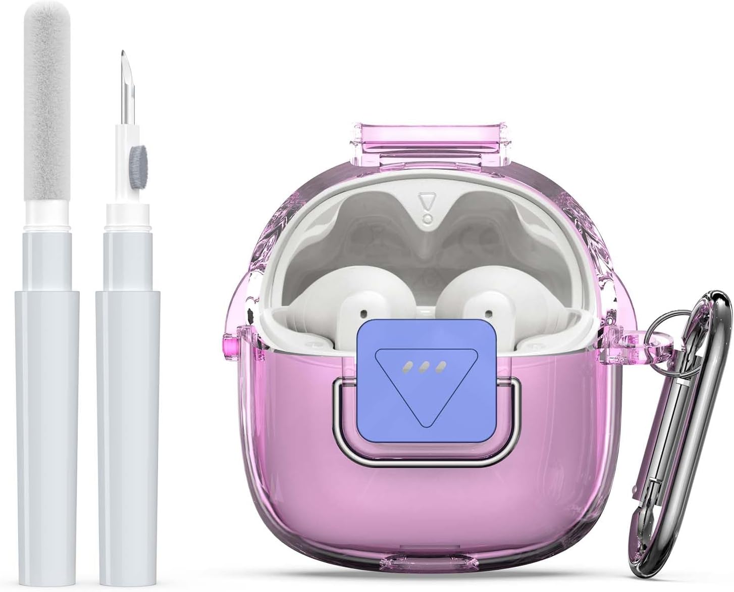 Upgrade Secure Lock for JBL Tune Flex 2 Case Cover with Cleaner kit, Clear TPU Protective Cover with JBL Tune Flex 2 True Wireless Noise Cancelling Earbuds Charging Case with Carabiner-Clear Pink