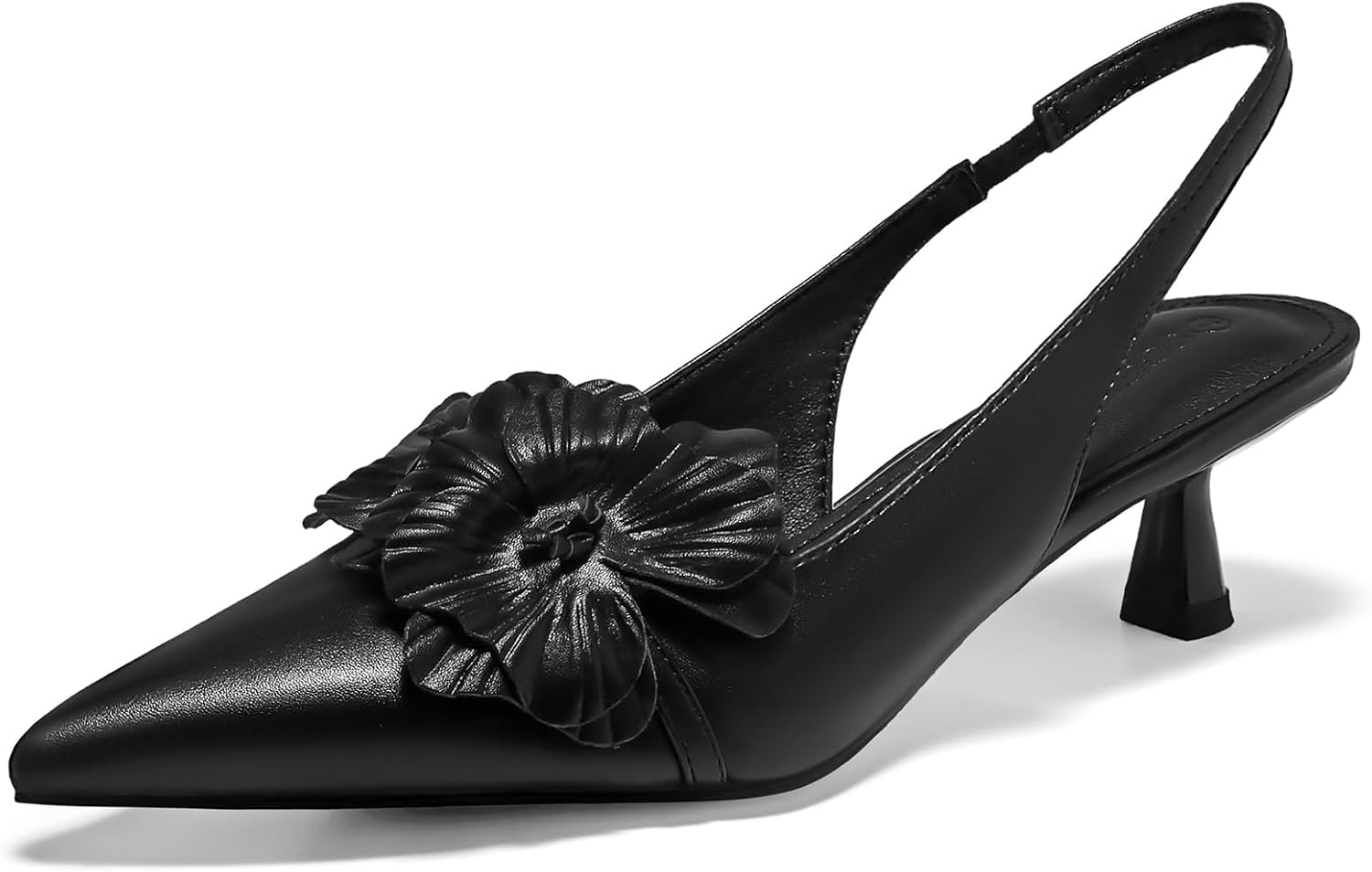 Coutgo Womens Slingback Kitten Heels Flower Closed Pointed Toe Pumps Wedding Party Dress Sandals Shoes