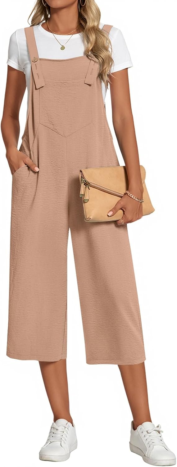 Women's Adjustable Jumpsuits Casual Wide Leg Overalls Summer Loose Rompers with Pockets