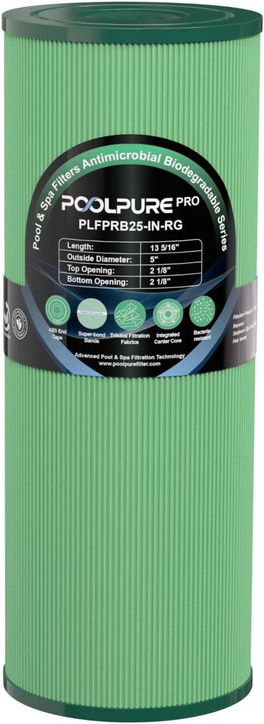 POOLPURE PRB25-IN Biodegradable Antimicrobial Hot Tub Filters, Compatible with Unicel C-4326, Filbur FC-2375, FC-2370, 3005845, 17-2327, 100586, 33521, 25392, 817-2500, 5X13 Drop in Spa Filter 1 Pack