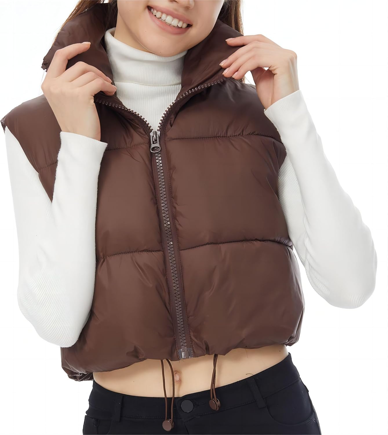 Women's Cropped Puffer Vest Winter Padded Vest Lightweight Zip Crop Puffy Gilet