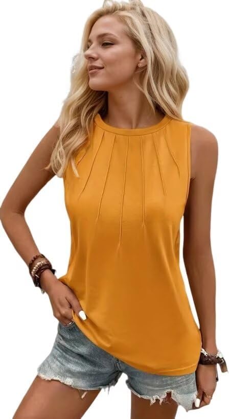 VKEGNIO Womens Fashion Ruffle Tank Tops Peated Crewneck Casual Tunic Top Summer Sleeveless Basic Shirt Loose Fit
