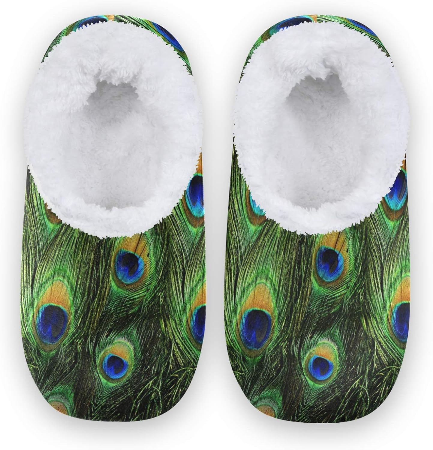 Naanle Peacock Feather Women's Closed Back House Slippers - Memory Foam Comfy Indoor Outdoor Bedroom Shoes With Anti-Slip Rubber Sole - Fuzzy Fleece Warm Home Footwear