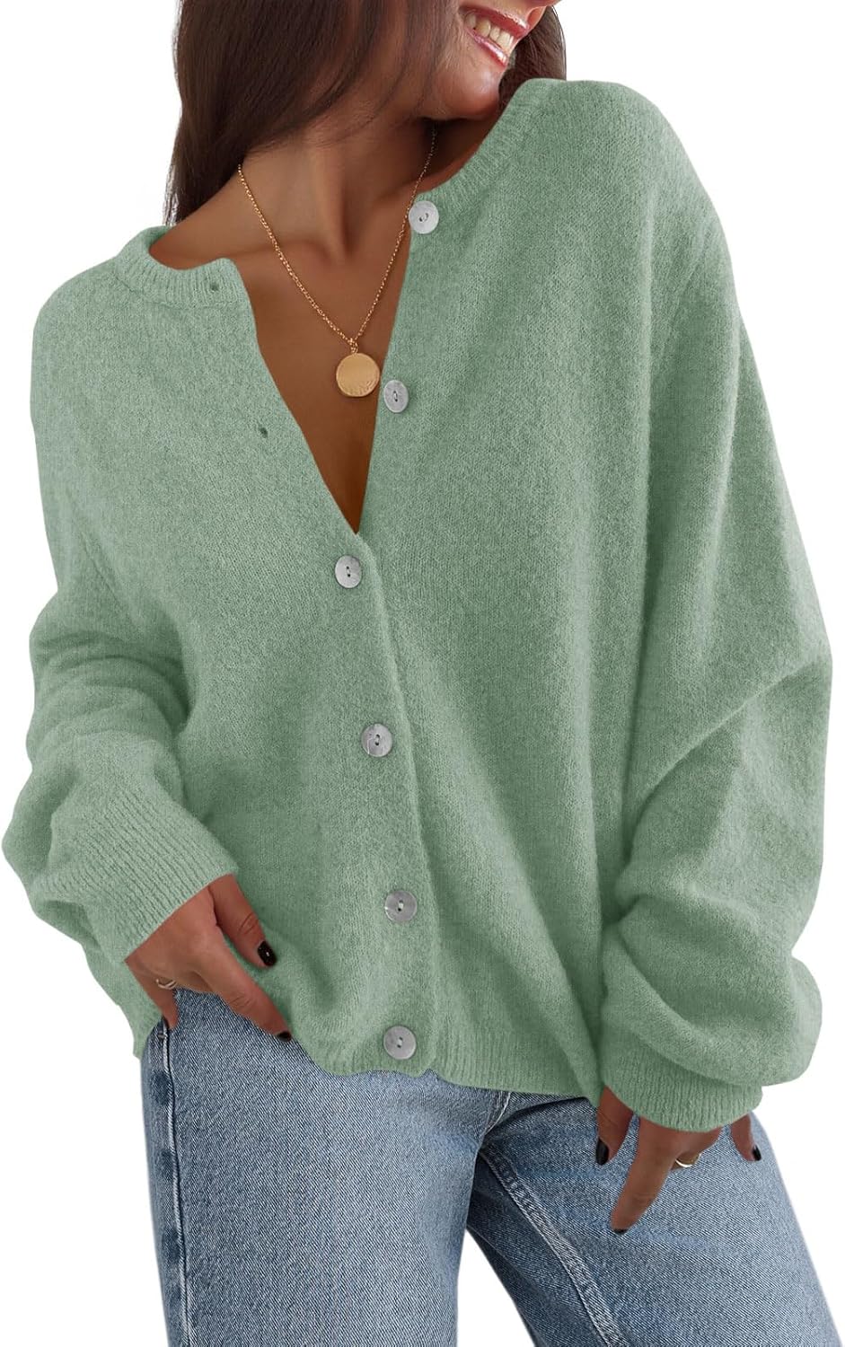 Saodimallsu Womens Cardigan Sweaters Button Down Long Sleeve Knit Outerwear 2025 Trendy Fashion Open Front Outfits