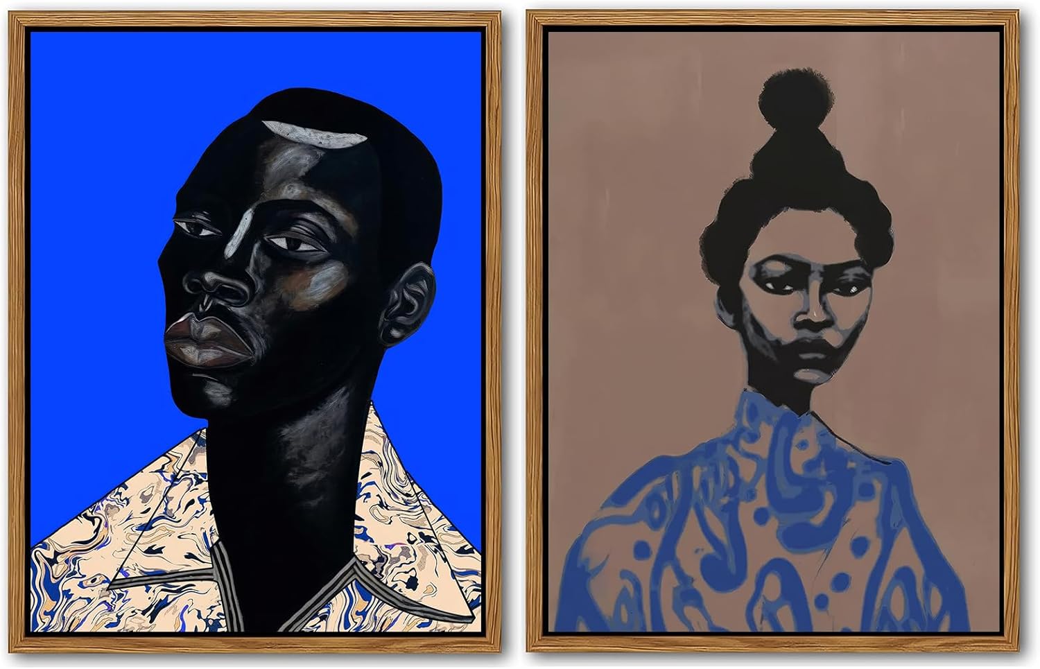- AFRICAN AMERICA WALL ART: This Artwork includes 2 unframed Black Women Men Portrait Painting Wall Art for home wall decor. Size: 12x16 Inch. No frame included.