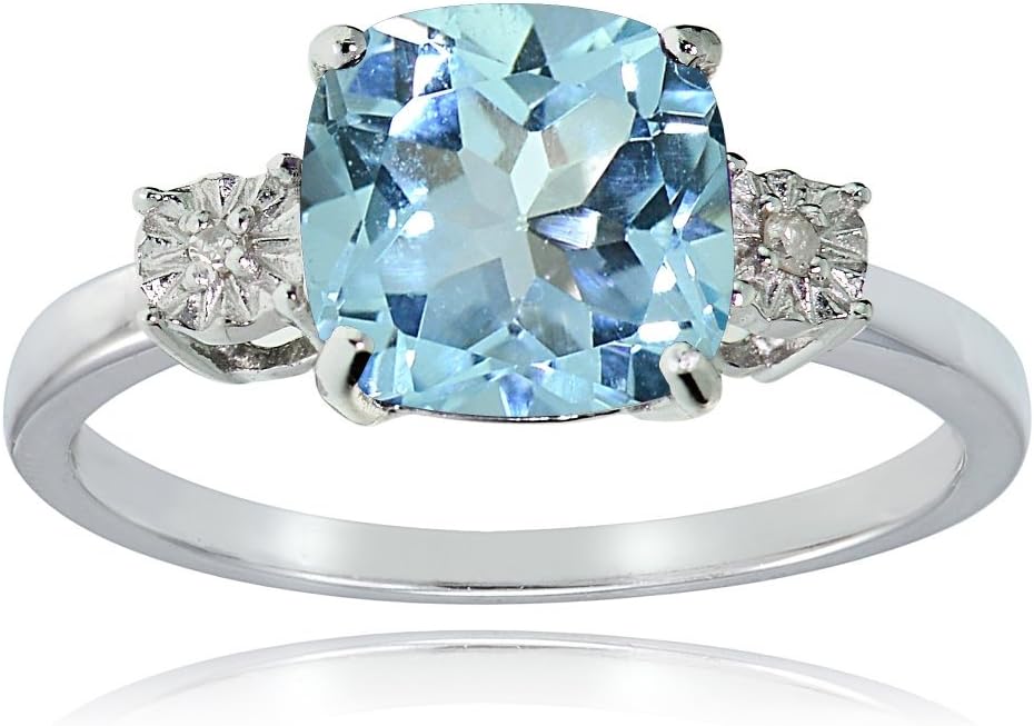 Ice Gems Sterling Silver Blue Topaz and Cushion-cut Ring