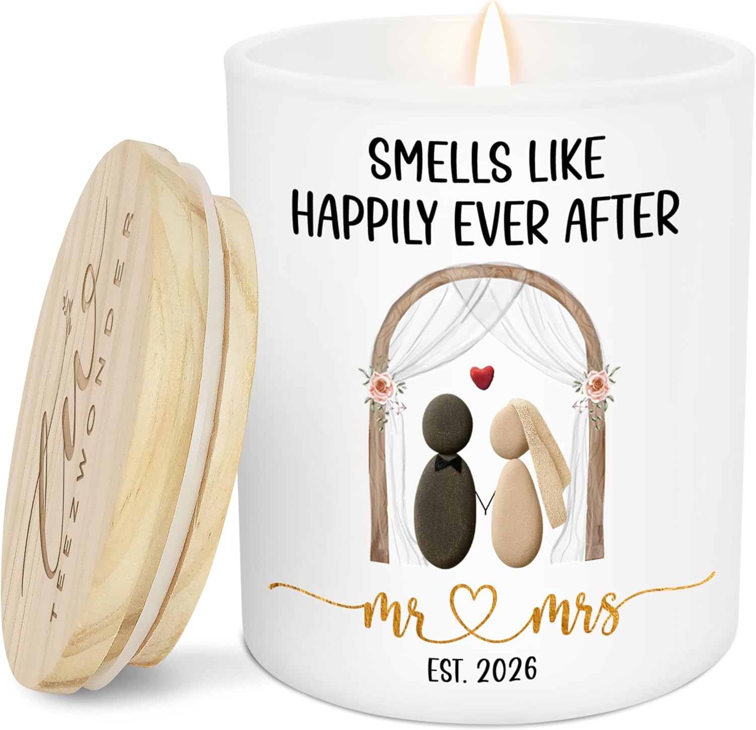 TEEZWONDER Wedding Gifts for Newlyweds - Mr & Mrs 2026 Scented Candle - Bridal Shower Engagement Gifts for Couples, Mr and Mrs Gift for Bride and Groom, Anniversary Wedding Gift for Women Men
