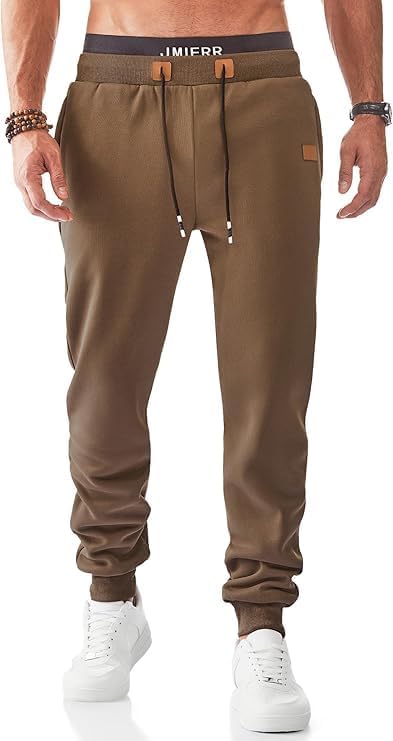 JMIERR Men's Fleece & Regular Sweatpants with Zipper Pockets Tapered Joggers Drawstring Waist Athletic Workout Track Pants