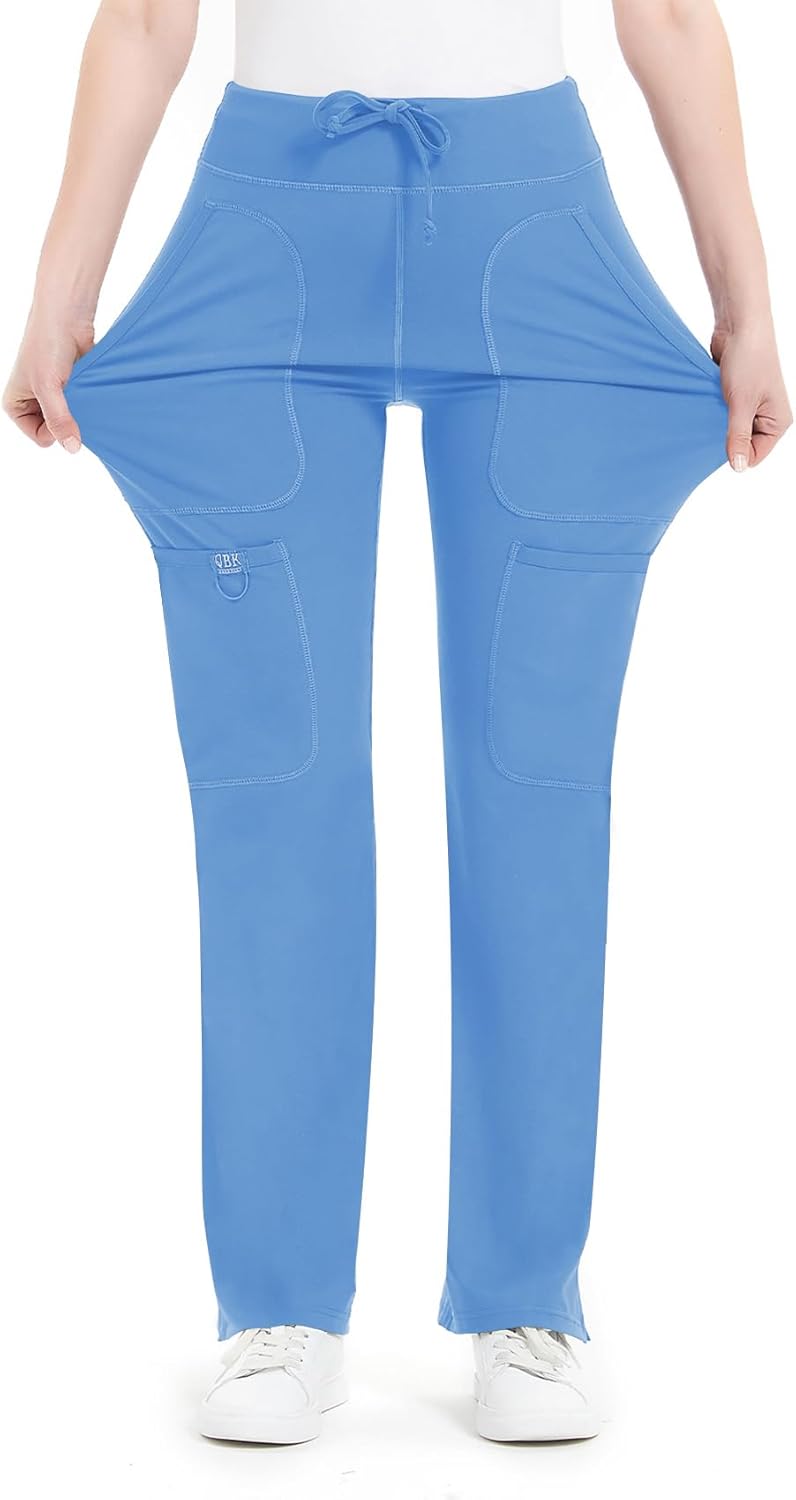 QBK Yoga Scrub Pants Women Mid Rise Yoga Work Pants- Five Pocket Cargo Scrub Pant