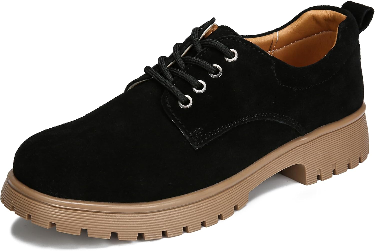 Veroders Women's Suede Oxford Shoes Classic Lace-Up Loafers Round Toe Comfortable Dress Business School Uniform Casual Flat