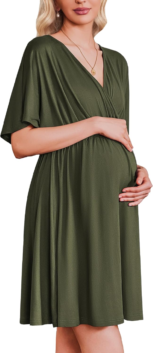 Ekouaer 3 in 1 Labor and Delivery Gown for Hospital Short Sleeve Maternity Nursing Dress Nightgown Postpartum Sleepwear
