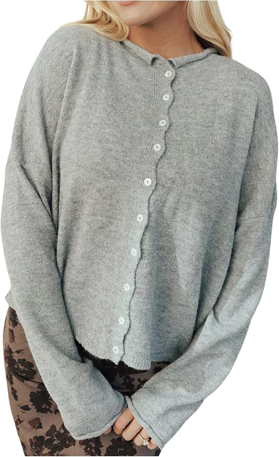 Esmeling Women Button Down Striped Cardigan Crew Neck Long Sleeves Sweater Open Front Knit Outerwear