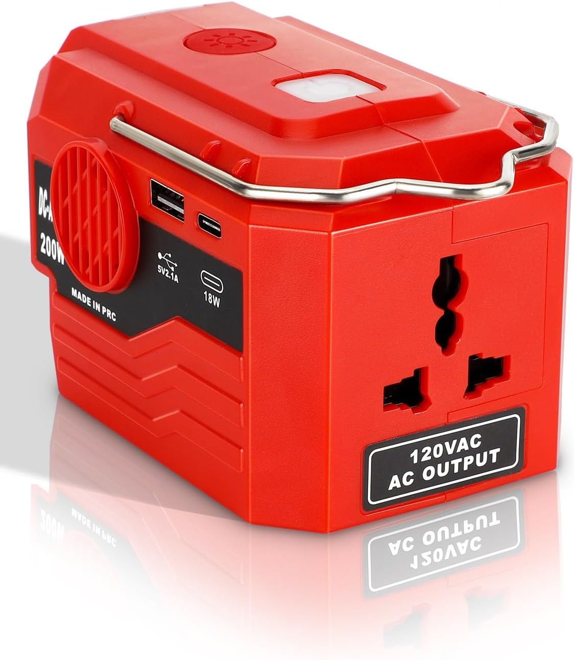 DC 18V to AC 110V Power Inverter for Milwaukee M18 18V Battery 200W Portable Modified Sine Wave Power Inverter Converter with LED Light, USB and Type-C Port(No Battery)