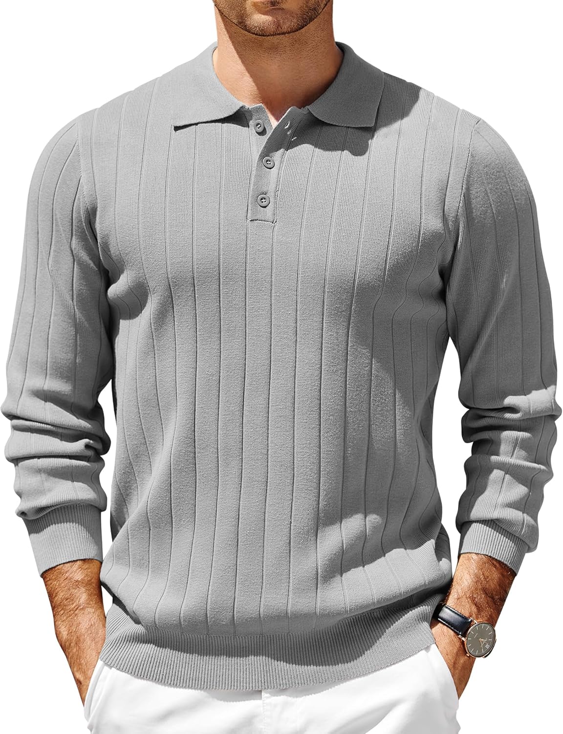 COOFANDY Mens Knit Polo Sweater Long Sleeve Polos Lightweight Casual Dress Pullover Sweaters