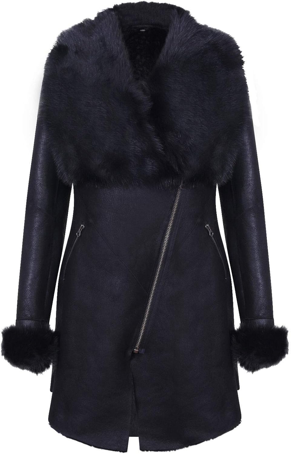 Women's Black Suede Merino Sheepskin Leather Coat with Toscana Collar