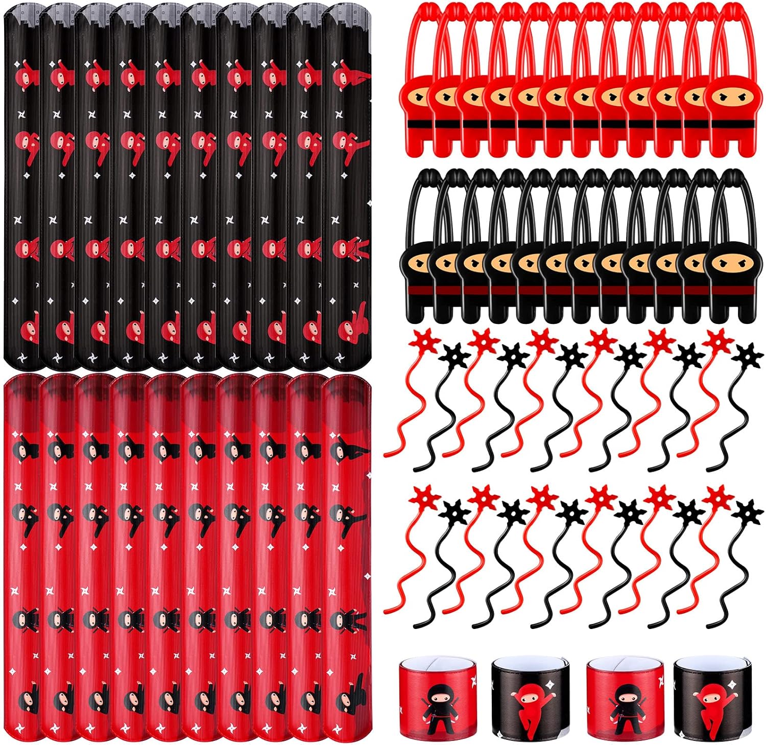 Jiuguva 72 Pcs Ninja Party Favors Karate Birthday Party Supplies Include 24 Warrior Slap Bracelets 24 Stretchy Flying Ninjas and 24 Stars Slingshots for Samurai Decorations