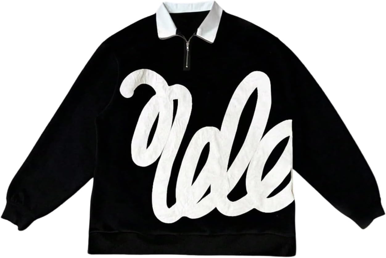GORGLITTER Men's Color Block Graphic Oversized Sweatshirt Long Sleeve Half Zip Up Collar Streetwear Boxy Cropped Tops