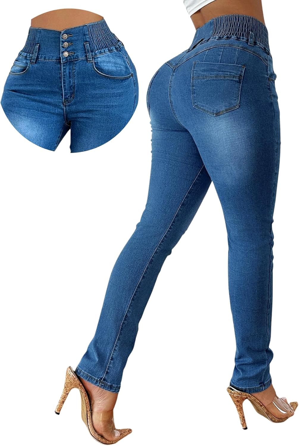 BYNNIC Women's Colombian Style Jeans Butt Lifting Elastic Waist High Waisted Jeans Tummy Control Stretchy Skinny Pants