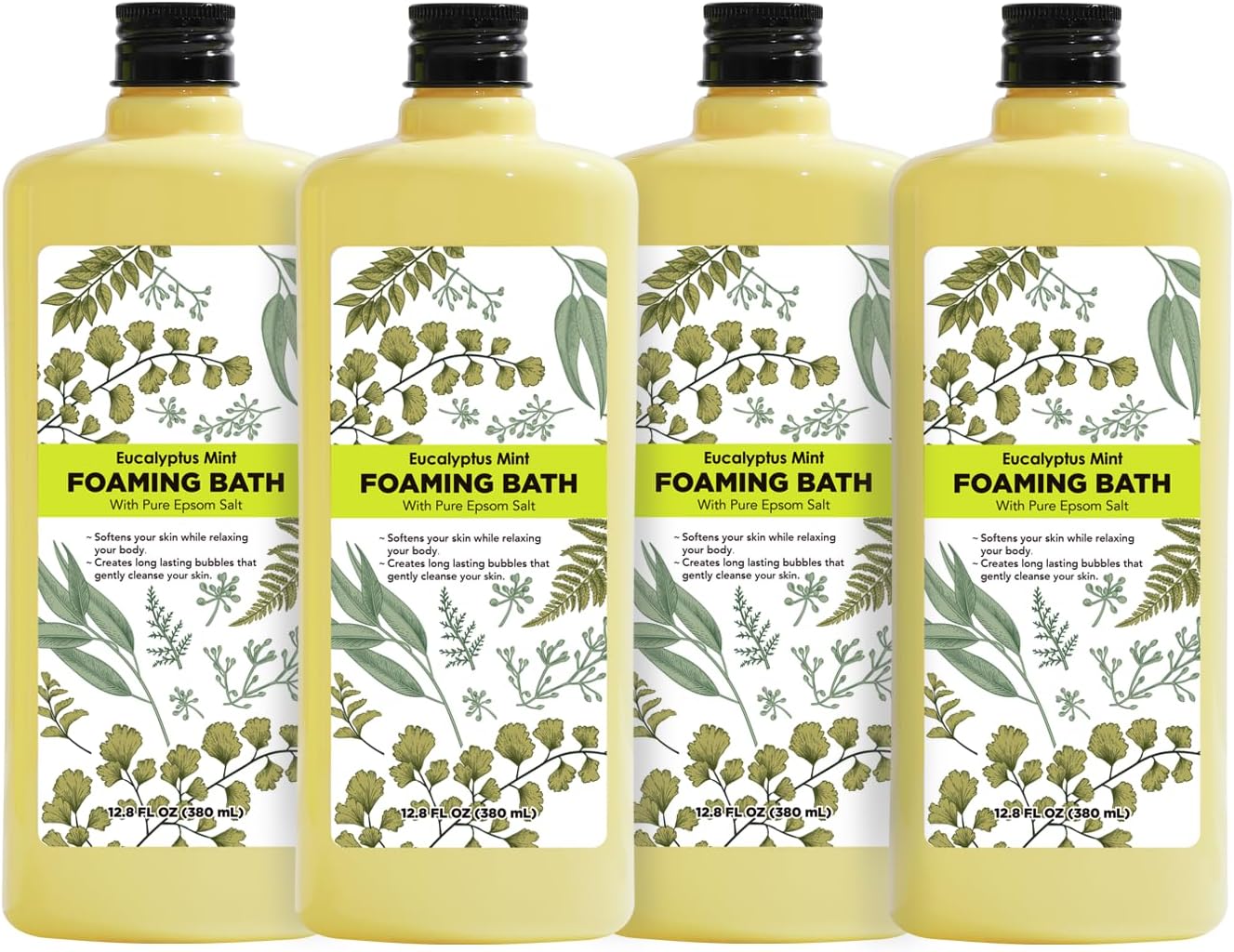 Bubble Bath for Women, Eucalyptus Mint Scented Bubble Bath Gifts Set, Foaming Bath Mother's Day Gifts for Mom, 51.2 fl oz (Pack of 4)