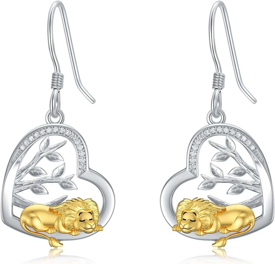LONAGO Animal Earrings 925 Sterling Silver Cute Tiger Lion Cow Ladybug Monkey Dangle Earrings for Women
