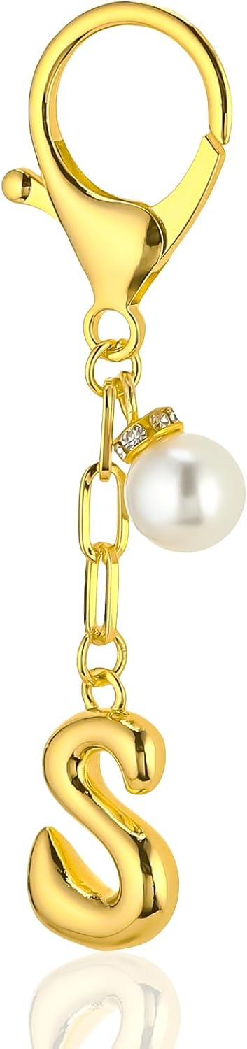 VICKHU Gold Plated Bubble Initial Letter Cute Keychain for Women Car Key Purse Decorative Keyring Handbag Charms Fashion
