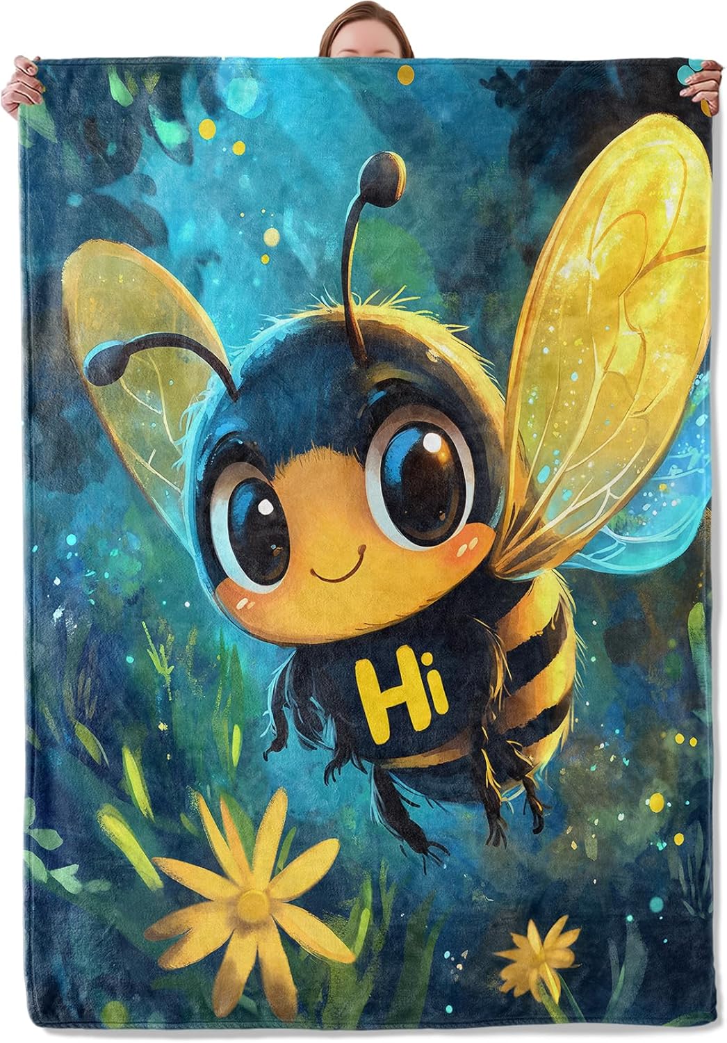 Bee Blanket Flannel Throw Blankets, Cute Cartoon Insect Lightweight Warm Soft Cozy for Women Girls and Nature Lovers, Gifts for Sofa Couch Chair Living Room Bedroom Home Decor, 50x60inch