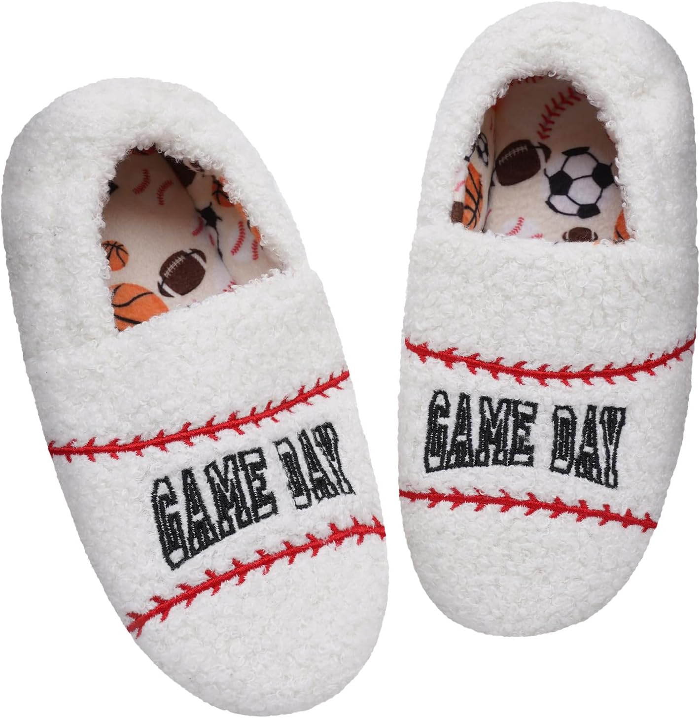 Little Kids Big Boys Ball Sports Slippers, Kids Warm House Shoes - Cute Winter Nonslip Indoor Basketball Football Baseball Slippers