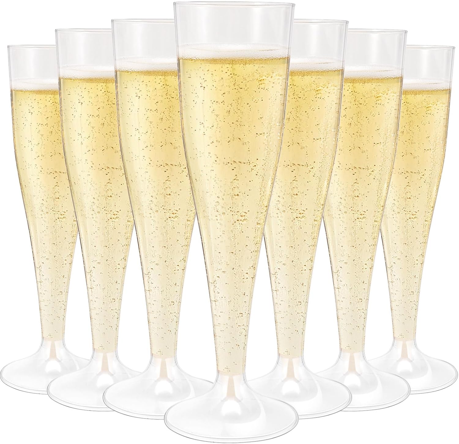- 🍾Plastic Champagne Flutes: Each bulk pack includes 50 clear plastic champagne glasses, perfect for accommodating large gatherings. This ensures that all your guests can enjoy a glass of bubbly without worrying about running out of glassware.