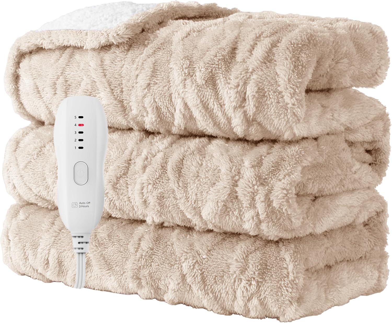 Heated Blanket-Electric Blanket 50"x60" Soft Heated Throw Blanket with 5 Heating Levels & 3 Hours auto-Off,Machine Washable(Beige
